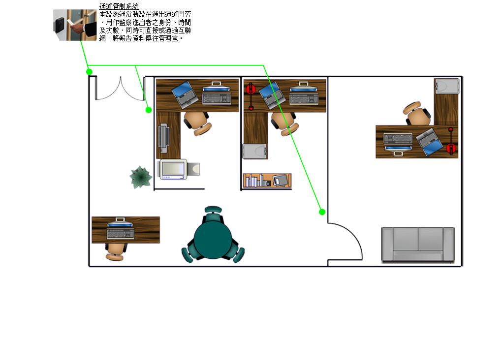 進出管理系統一般以密碼+拍卡感應作為授權識別,能記錄已獲授權人仕進出的時間、日期及類別,限制非授權人仕進入管制區域。